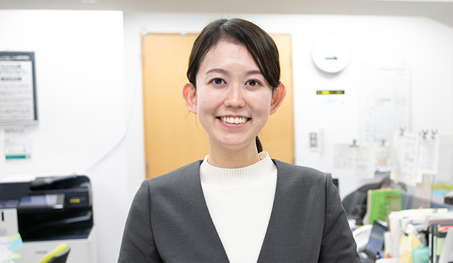 文学部史学科卒。小学生から始めた書道は十段の腕前。高校の書道部では、文化祭で書道パフォーマンスを披露した。大学では、学芸員資格取得のため、美術館や博物館を巡る。現在の趣味はミュージカルなどの舞台鑑賞。資格は秘書検定2級、英検2級を持つ。好きな言葉は「一期一会」。お客様との巡り合わせは一期一会なので、その出会いを大切にしている。好きな食べ物はサクサクのクロワッサン。東急グルメフロントでは「しぶそば」のかき揚げそば。