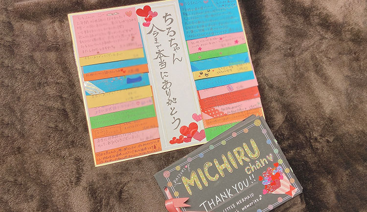 ※2 リトルマーメイド鷺沼店勤務の最終日、スタッフの方からいただいた寄せ書き。嬉しくて涙がでました。大切な宝物です!